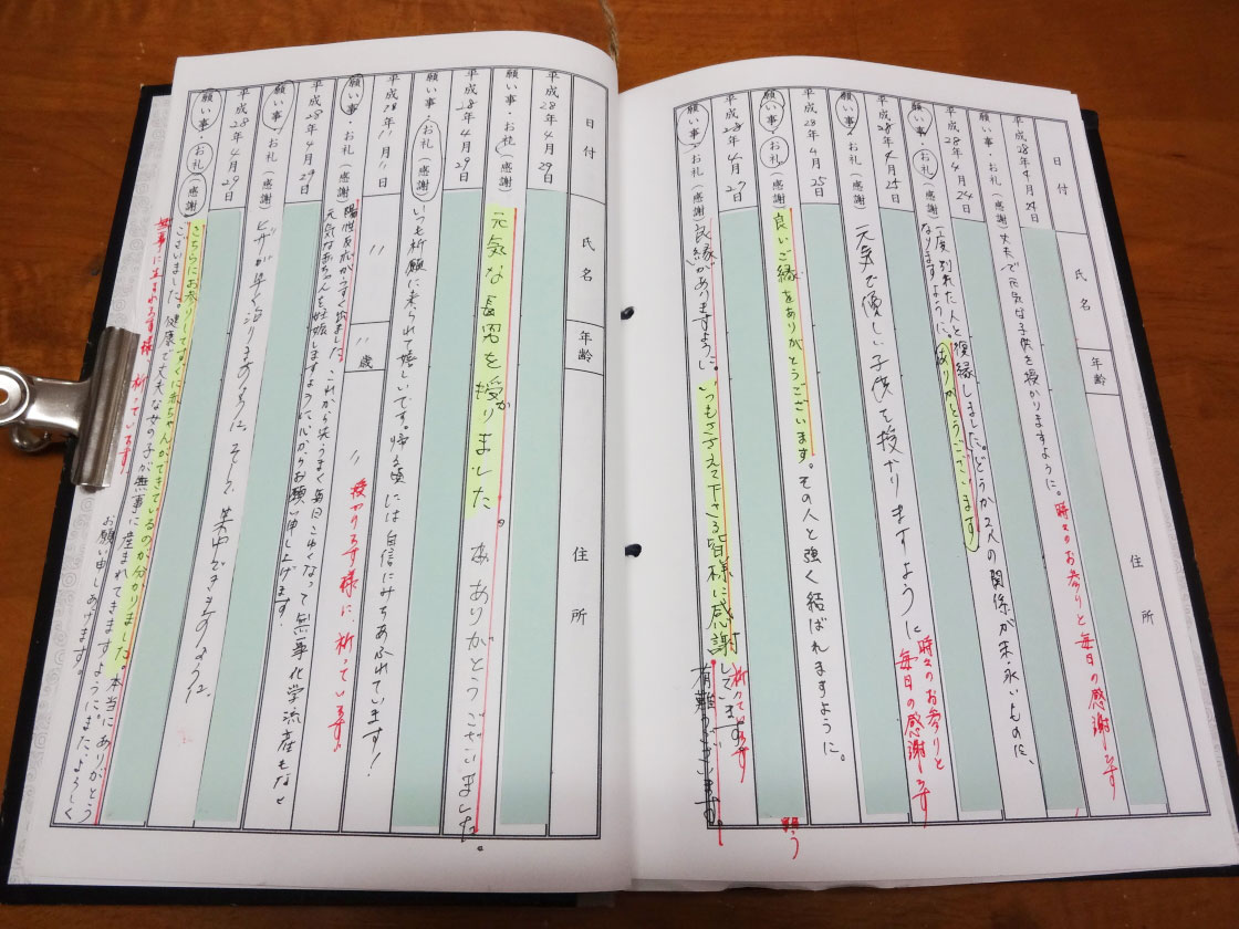 他の方がどのようなお願いをされているか、参拝名簿を読まれ参考にされて下さい。