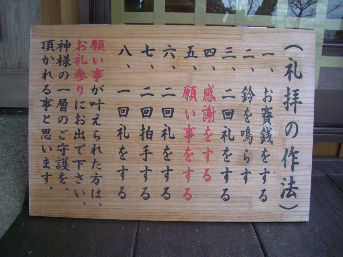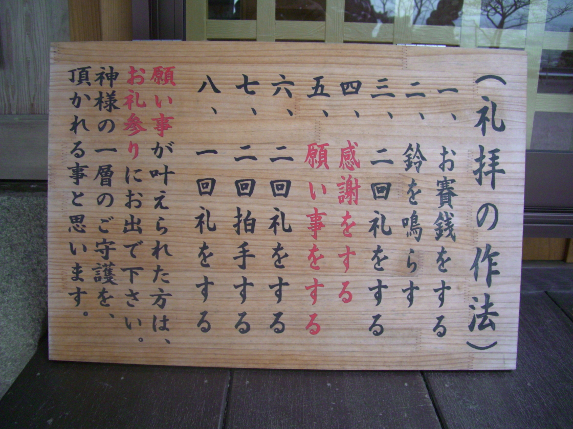 - 願い事が叶われたら、必ずお礼参りをなされて下さいね。(お礼をすれば、更に神様のご守護を頂けます。)