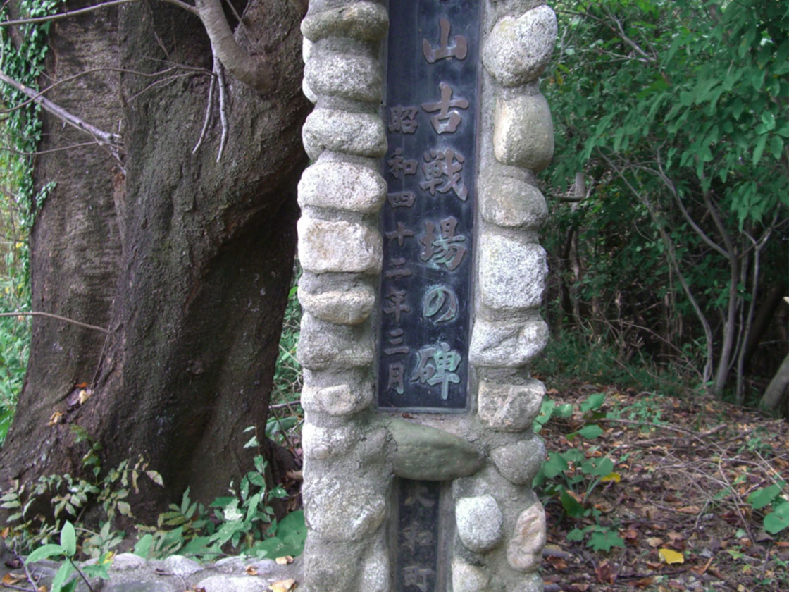 大正15年(1926)佐賀で陸軍特別大演習が行われ、御前講和で今山の合戦の講和がなされ、昭和6年(1931)陸軍大学参謀演習にて、秩父宮雍仁親王殿下が、今山の合戦ご研究のためこの地に立たれ、前方の小円古墳の上に記念碑が建てられている。